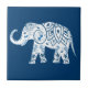 Azulejos cerâmicos de arte étnica impressionantes com elefante do estilo de tatuagem de henna decorativa em fundo azul escuro. Cor de fundo disponível para personalizar para corresponder à decoração.
