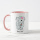Elefante Bonito segurando uma caneca de coração. O texto pode ser personalizado.