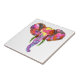 um trabalho de arte de aquarela tradicional de um elefante africano em muitas cores diferentes em um azulejo cerâmico.