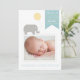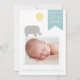 Elefante Bonito com Anúncio de Nascimento do Balão Anúncio de Nascimento Personalizável com uma ilustração de elefante de cinza com um balão amarelo.