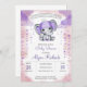 elefante de menina aquática com Chá de fraldas roxo Convite Este convite para chá de fraldas de elefante de cor d'água apresenta um elefante giro, um coração azul bebê. Ideal do chá de fraldas do elefante de um próximo menino.