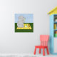 Feliz em estar na companhia um do outro, um elefante bebê e um rato partilham uma conversa agradável e uma xícara de chá nesta design. Os dois amigos sentam-se num cobertor amarelo coberto de margaridas. Um bule verde de maçã senta-se sobre uma gota entre eles e cada um segura uma xícara correspondente. Da minha imagem original criada digitalmente.