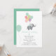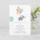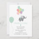 O primeiro convite de aniversário de um bebê bonito, feito em branco, com gráficos doces de um elefante de cinza sendo mantido junto com balões coloridos. Personalize o texto, na metade inferior do convite, para atender às suas necessidades.