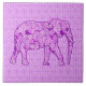 Gráfico digital de padrão misto de um elefante ricamente embelezado contra um fundo de azulejos arabescos - tons de lavanda, orquídea e roxo ametista