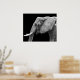 Fotografia isolada de um elefante africano a preto e branco sobre fundo preto.