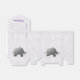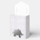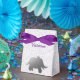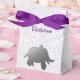 Um elefante "prateado" giro numa caixa de favores de fundo branco para uma ocasião especial.