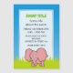 Um desenho animado de bebê elefante, rosa e bonito, caminhando sobre grama verde sob céu azul.