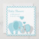 Um elefante bonito com ela é a mamãe protetora. Bonito corações turquesas os rodeiam mostrando o amor que eles têm um pelo outro. Personalize com suas informações para criar um convite para chás de fraldas muito bonito.