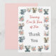 Mostre seu apreço da forma mais encantadora com este Cartões de agradecimentos de Flores Selvagens de Elefantes e Boho. Apresentando um elefante adorável cercado por uma exuberante vegetação da selva e delicadas florais ao estilo boho, este cartão combina perfeitamente a diversão safari com uma beleza elegante e inspirada na natureza. O design de aquarela suave e tons de terra criam um toque caprichoso, mas sofisticado, que complementa a selva, safari ou boho-chic aniversários temáticos.