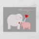 Um doce elefante bebê de desenho animado adorna este lindo cartão postal de agradecimento para festa de bebê. Fácil de personalizar de acordo com as suas necessidades. Altere a cor do fundo, estilo do texto, cor e tamanho. Torne-o único para atender às suas necessidades. Design original de Night Owl's Menagerie, 2011.