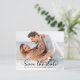 Casamento De Foto De Script Elegante De Na moda Elegante De Orçamento Salve As Cartões De Data. Apresenta uma foto de cheio e uma caligrafia elegante de camada de fotos, escrita com letra maiúscula, com letra maiúscula, em preto clássico e branco, que captura a essência da elegância contemporânea. Personalize facilmente cada cartão, incorporando detalhes de casamento queridos e uma fotografia, oferecendo um meio refinado e sofisticado para anunciar e celebrar o seu dia extraordinário.