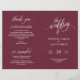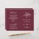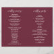 Este é o cartão do programa de cerimônia de núpcias dobrável, em um roteiro de elegância na cor Burgundy. Ele foi projetado com sotaque de rolagem que pode ser personalizado com texto personalizado/ personalizado para seu partido noiva, detalhes da cerimônia, notas memoriais e mensagem de obrigado. ** Nota: esses programas de papel de peso de texto chegam em formato plano e exigem a dobragem para montagem.