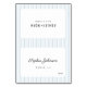 Cartão de lugar de casamento elegante apresenta um design de tipografia gracioso que combina script clássico e fonte sans serif moderna em fundo de listras azuis empoeiradas, com opção de escolha de refeição, simples e único, ótimo para casamento vintage tradicional, casamento clássico moderno e casamento boho retrô,