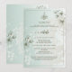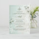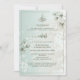 Convite Minimalista Elegante para Nikah | Design Tundra Prata e Verde Oliva Salvia com Flores de Arte Linear