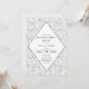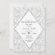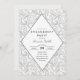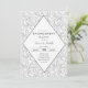 Este simples, porém elegante design apresenta um padrão de espiral floral de cinza leve no fundo com detalhes da festa dentro de um design de diamante moderno. Todos os campos de texto são personalizáveis.