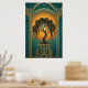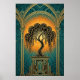 Elegant Art Deco Weeping Willow Gold & Teal Poster