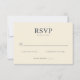 This elegant wedding RSVP card features a minimalist design with a soft beige background, creating a clean and sophisticated look. The layout includes bold serif typography for the "RSVP" heading, complemented by simple sans-serif fonts for response options, ensuring clarity and ease of use. A single ornate flourish adds a touch of elegance without overwhelming the straightforward composition. Perfect for formal weddings, this card conveys a mood of anticipation and refinement, making it an ideal choice for couples seeking a classic yet modern invitation style.