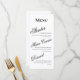 The bold “Menu” heading creates a clean focal point, while the graceful script for each course adds a soft, luxurious touch. Crisp black typography against a classic white background ensures this design complements formal, traditional, black-tie, and modern minimalist weddings effortlessly.