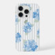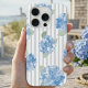 Elegant Blue Hydrangea Pattern Gray Stripe Phone Case. Bring the timeless elegance of a coastal summer into your daily routine with this delicate hand created art of hydrangea floral overlaid on a classic gray ticking stripe. Perfectly blending high-end garden aesthetics with a breezy East Coast vibe, this phone case offers a sophisticated touch to your day. Choase your phone type. Contact the designer for any customization questions. Hydrangea design is original to Cross Fox Design.