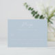 This elegant wedding RSVP card features a minimalist design with a soft pastel blue background and crisp white text, creating a serene and sophisticated look. The layout is clean and well-organized, with ample negative space that highlights the cursive "RSVP" at the top and simple sans-serif fonts for clear communication. Customizable fields allow for personalization, making it perfect for formal events. The overall mood is calm and refined, ideal for couples seeking a polished and modern aesthetic for their special day.