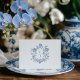 An elegant wedding RSVP card featuring a delicate blue floral crest with a customizable monogram at the top. Designed with timeless typography and a refined botanical wreath, this classic response card allows guests to confirm attendance, meal selections, and number attending. Perfect for romantic, traditional, garden, or European-inspired weddings. Personalize the initials, reply date, and wording to suit your celebration.
