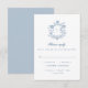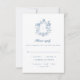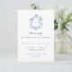 Elegant Blue Floral Crest Wedding RSVP Card with Monogram