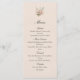 A graceful wedding menu card in a soft blush pink tone, adorned with delicate gold-accented roses and elegant typography. The refined floral design brings a romantic and timeless touch to your reception table setting.