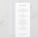 Menu folha única, tamanho: 10,16 x 22,86 cm, papel: Semi-brilho Básico