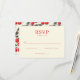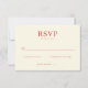 This wedding RSVP card features a minimalist design with a soft cream background and bold, deep red text for the "RSVP" heading. The layout is clean and elegant, incorporating a simple cursive script as a decorative element, adding sophistication without overwhelming the straightforward sans-serif typography used for response options. The color palette of cream and deep red creates a subtle contrast, enhancing readability while maintaining an understated elegance. Perfect for formal events, this card ensures clear communication of attendance intentions with its direct and organized composition.