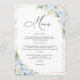 Elegant Dusty Blue Wedding Menu is an elegant and modern wedding menu designed in a soft dusty blue tone that exudes calm sophistication. The clean and refined layout creates a harmonious and cohesive look for the wedding table setting. Beyond clearly presenting the meal courses, this menu also serves as a stylish decorative element, enhancing the romantic and timeless atmosphere of the couple’s special day.