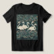 This t-shirt features five flamingoes standing in a river.