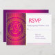 Cartões de RSVP com Ganesh elegante e bonito em um fundo rosa roxo decorativo, perfeito para o casamento tradicional indiano. Deixe sua ocasião especial ser inesquecível para todos, começando com os convites. Também estão disponíveis convites de casamento, adesivos e selos deste tema em nossa loja.