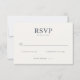 This wedding RSVP card features a minimalist and elegant design with ample negative space, creating a clean and sophisticated appearance. The soft off-white background is complemented by dark gray text in a mix of serif and sans-serif fonts, enhancing readability and visual appeal. A horizontal line divides the sections, while circular bullet points guide guests through their response options, "Joyfully Accepts" or "Regretfully Declines," ensuring clarity. The customizable cursive script adds a personal touch, making it perfect for formal events that require a refined yet approachable aesthetic.