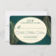 This refined RSVP card design combines a rich emerald green background with delicate gold feather illustrations and a soft oval center panel, creating a luxurious and graceful stationery piece. The balanced layout provides clear spaces for guest name, attendance confirmation, number attending, and dietary requirements, making it ideal for weddings, anniversaries, engagement parties, formal dinners, milestone birthdays, bridal showers, luxury receptions, and elegant corporate events. The minimalist composition with gold detailing gives it a timeless premium look suitable for high-end invitation suites