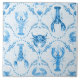 A coastal design with watercolor lobsters, crabs, and shells in cornflower blue tones. Perfect for preppy beach house style.