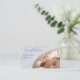 Foto de uma mulher que recebeu uma massagem enquadrada por um arco de na moda e um fundo de mármore. A parte de trás tem a mesma mármore para todas as suas informações de contato ou informações de compromisso. cartão de visita de excelente para massagista, fisioterapeuta ou spa e salões diários.