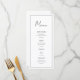 Menu folha única, tamanho: 10,16 x 22,86 cm, papel: Semi-brilho Básico