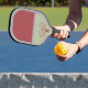 These pickleball paddle are decorated with a very trendy color palette . A light grey border surrounds it and shares the surface in a beautiful English red and an elegant laurel green. On the back, these two colors are reversed.