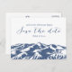Para casais se casarem nas montanhas, este convite de casamento azul é uma escolha elegante. Katharine Woodman-Maynard desenhou este design de recorte de madeira para o casamento de sua amiga no Colorado, mas ele pode ser usado para qualquer casamento nas montanhas. Consulte a coleção de cheios de placas RSVP, números de tabela, Cartões salve a data, saco de tote e muito mais.