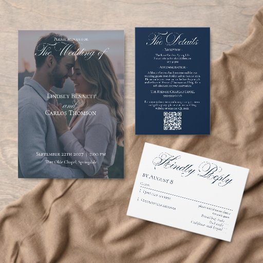 Elegant Navy Blue Wedding Dinner Menu & Bar Menu