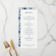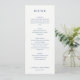 This elegant wedding menu features a clean, minimalistic design with a soft off-white background and navy blue text. The layout is structured into four sections—Starters, Salad, Main Course, and Dessert—each clearly labeled in bold, uppercase sans-serif font. The typography is classic and sophisticated, enhancing the formal and refined mood of the design. Perfect for a chic and timeless wedding celebration, this menu combines simplicity with an air of sophistication, making it ideal for couples seeking a polished look for their special day.