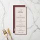 Add timeless sophistication to your reception with this Elegant Old Money Wedding Red Dinner Menu Card. Featuring a deep vintage red background, refined serif typography, and minimalist gold accents, this design exudes luxury and heritage. Perfect for classic, formal, or luxury-themed weddings, it beautifully complements rich décor and candlelit dinners. Personalize it easily to match your wedding colors and menu — a chic keepsake your guests will love.