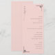 This elegant wedding menu features a minimalist design with a soft pink background, creating an inviting and sophisticated atmosphere. The layout is structured into clear sections for starters, salad, main course, and dessert, each highlighted with uppercase serif headings that add a touch of formality. Decorative geometric line art in the corners enhances the modern aesthetic, while simple sans-serif fonts ensure readability. Perfect for a formal dining experience, this menu combines style and functionality to impress guests.