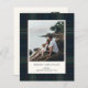Modern Christmas card featuring a timeless design with your favorite photo over a muted navy blue and green plaid background along with the greeting, "Merry Christmas". Use the template to add your personalized message.