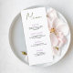 The clean typography and spacious layout make this menu both stylish and easy to read, adding a polished finishing touch to your place settings. Personalize with your own courses, meal descriptions, and beverage selections to reflect your unique celebration.