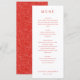 This elegant wedding menu features a clean, vertical layout with ample white space, creating a sophisticated and understated look. The color palette includes soft cream backgrounds accented by deep red headings, enhancing readability and visual appeal. The design utilizes a mix of serif and sans-serif fonts to guide the eye smoothly through each section, from starters to dessert. Perfect for formal occasions, this template emphasizes clarity and refinement, making it ideal for couples seeking a classic yet modern presentation for their special day.