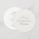 This elegant round wedding menu combines timeless ivory tones with refined sage green typography. Designed with graceful calligraphy accents and modern serif lettering, it beautifully personalizes each guest’s place at the table.