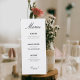 The clean vertical format creates a polished, upscale presentation while keeping your courses beautifully organized. From plated dinners to formal multi-course celebrations, this design complements black tie weddings, ballroom receptions, estate venues, and modern minimalist themes.