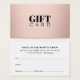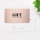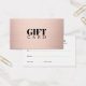 Elegant customizable gift certificate card design for beauty or fashion related professionals. Simple chic design with faux rose gold background.