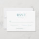 This elegant wedding RSVP card features a minimalist design with ample negative space, creating a clean and sophisticated look. The soft teal color palette contrasts beautifully against the light grayish-white background, enhancing readability and visual appeal. The layout includes a central alignment of text, with clear options for guests to indicate their attendance, ensuring a straightforward response process. Perfect for formal occasions, this card combines modern aesthetics with functionality, making it an ideal choice for couples seeking a refined yet approachable invitation style.